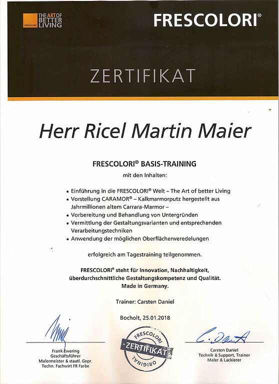 - Kreativtechniken: Flächengliederung, Lasurtechniken, Vergoldung.